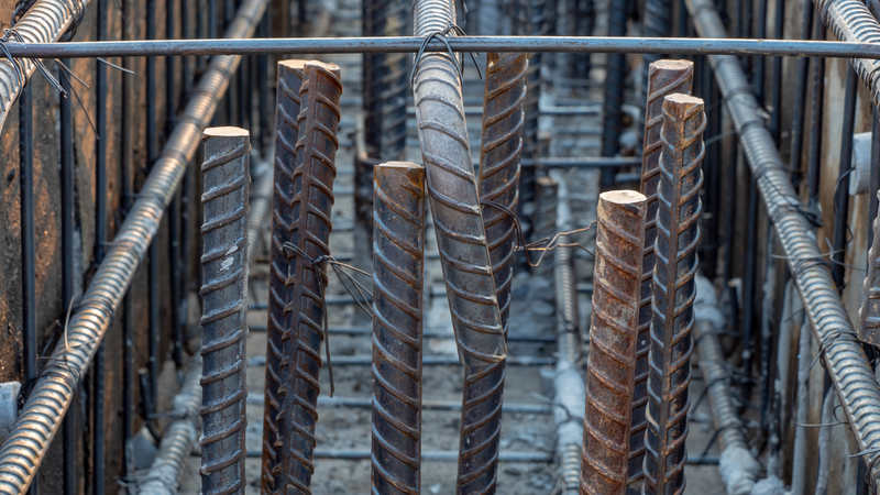 Vertical Dowels: Concrete reinforcement left vertically to allow attachment of subsequent elements. Can also form part of concrete columns. These concrete reinforcement elements are left from an existing sub-grade concrete structure like a pilaster or a pile cap.
